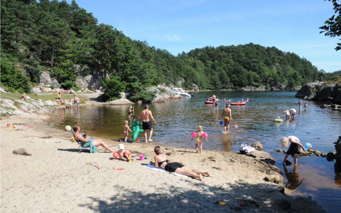 ØSTRE HUMMERVIGA er opparbeidet for allmennheten. Her er toalett, varmt- og kaldtvann og dusj på utsiden av bygningen. I den innerste delen av Østre Hummerviga er det sandbukt som er godt egnet for bading og soling. Fra den innerste P-plassen er det merket og delvis opparbeidet sti til sørenden av neset.